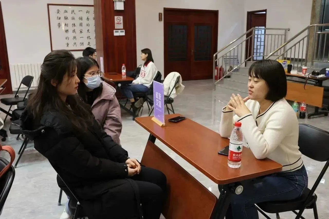 中景瑞晟总经理助理王晓乐、组织发展部主管郑方钰子、技术标准部主管庄妍向同学们提供一对一的简历诊断与面试指导,提出了宝贵建议,有效回应了同学们现阶段的求职困惑与疑虑。此外,中景瑞晟(北京)管理咨询有限公司还邀请企业内部的两位优秀校友进行经验分享,使同学们了解到丰富的行业知识、学习到实用的职场技巧。
